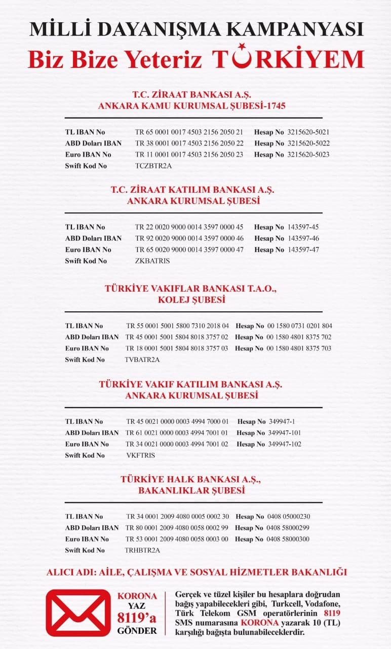 DUYURU: MİLLİ DAYANIŞMA KAMPANYASI banka hesap numaraları